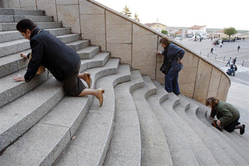 اگر هم به مشکلات و دردهای کمری و زانودرد مبتلا هستید، بهتر است در نبودن آسانسور و اگر مجبورید از پلهها استفاده کنید، آنها را از پهلو بالا بروید یعنی به دیوار تکیه داده و به همین شیوه یکییکی پلهها را بالا بروید. این حالت باید خصوصا در موقع پایین آمدن از پلهها رعایت شود. شما باید به دیوار تکیه کرده ابتدا یک پا و سپس پای دیگر را روی پله پایینتر قرار دهید. این مساله مهم را باید در هنگام پایین آمدن از سطح شیبدار نیز مدنظر قرار بدهید. کسانی که در مناطق کوهستانی زندگی میکنند و خانههایشان در سطح شیبدار تندی واقع است، باید در هنگام پایین آمدن، همانند اسکیبازان عمل کرده و به حالت زیگزاک یا مارپیچی و عمود بر سطح شیبدار پایین بیایند تا کمترین فشار به زانوها وارد شود.